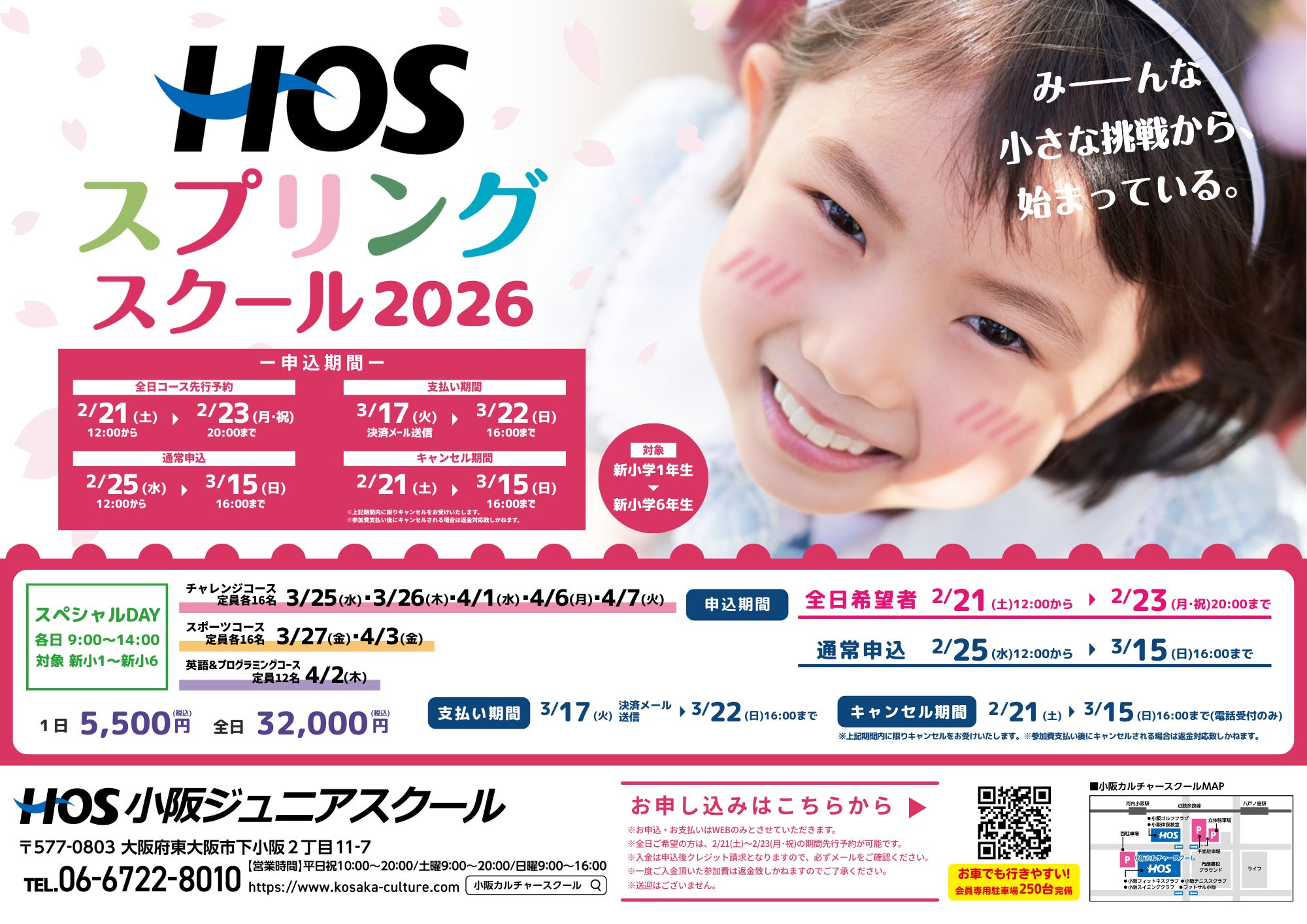 - 小阪ジュニア・カルチャースクール|HOSスプリング スクール2026開催!